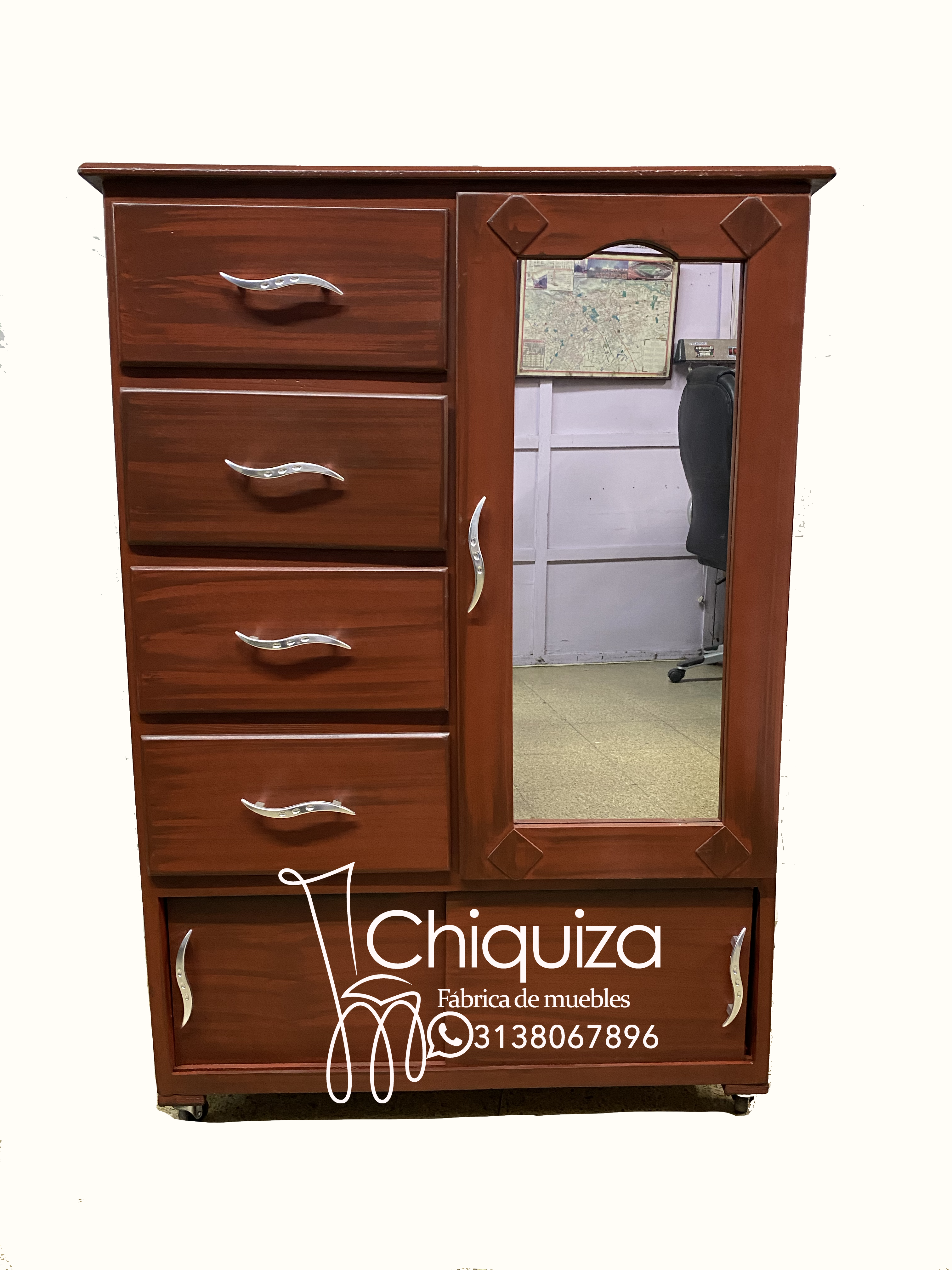 Closet pequeño, con rodachinas, cuatro cajones,un colgador y zapatero