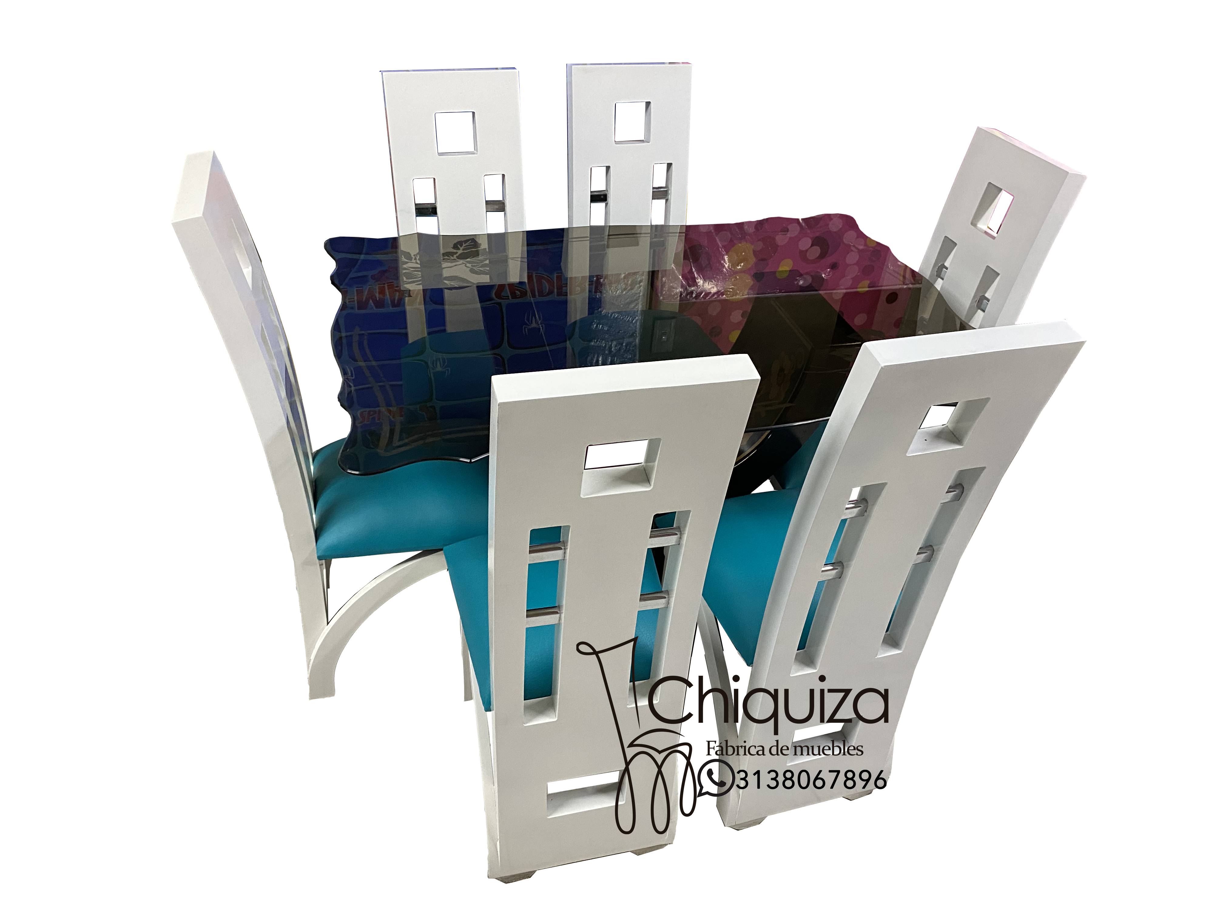 Comedor de seis puestos tapizado en cuerotex con vidrio de 8mm