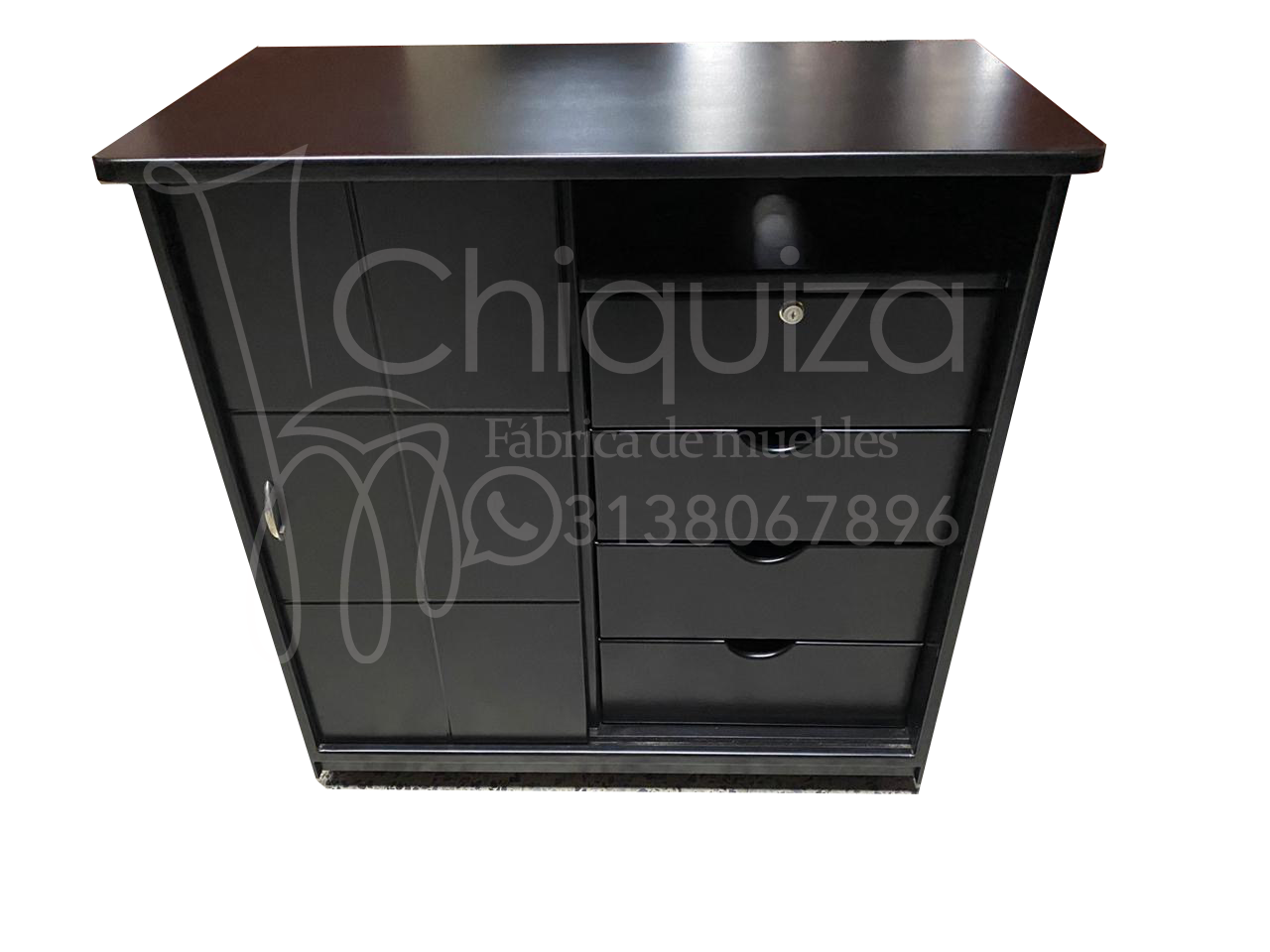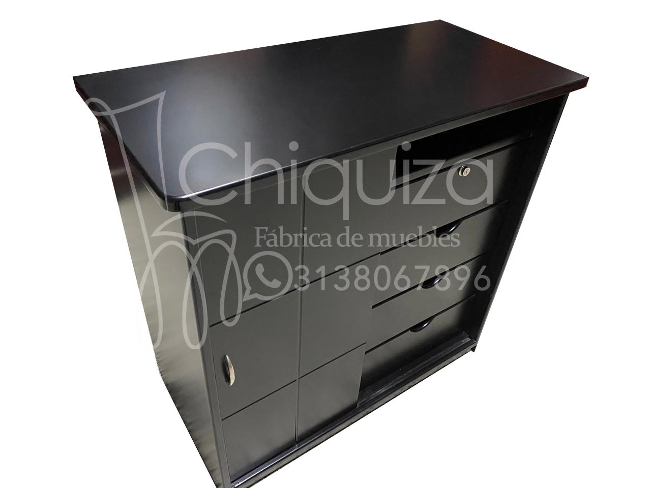 Closet pequeño con cuatro cajones, 1 espacios para colgar ropa y espacio para el DVD, cpn rodachinas